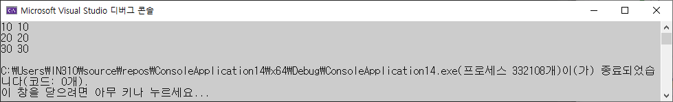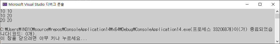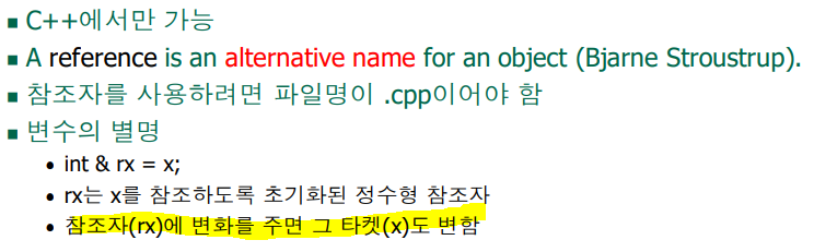 cout << x << " " << rx << endl; //타켓(x)에 변화를 주면 그 참조자(rx)도 변함