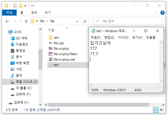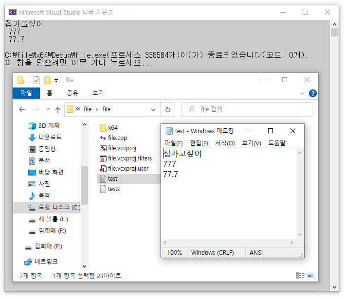 ofstream hout("test.txt"); // 출력파일 스트림 객체 hout 선언