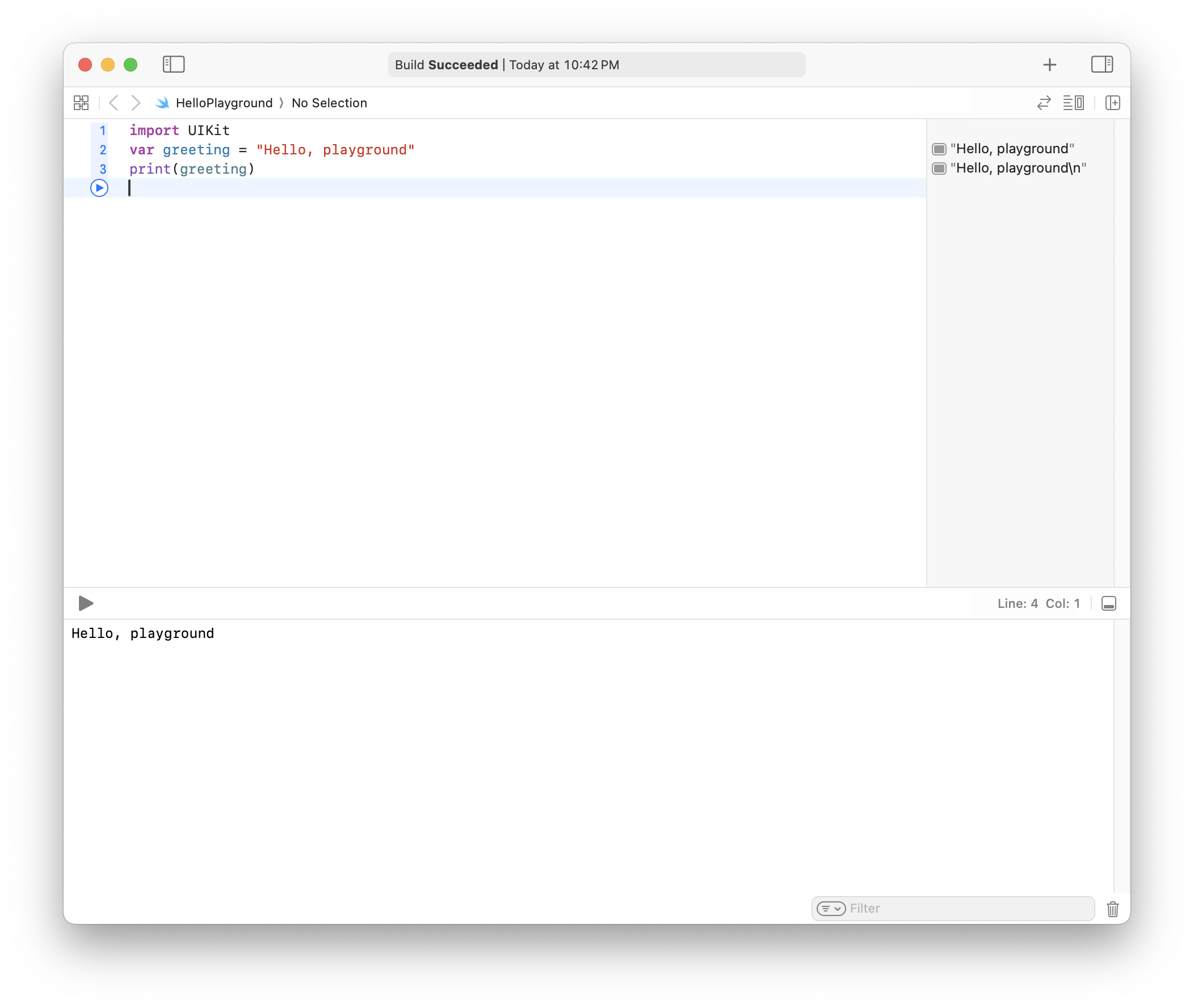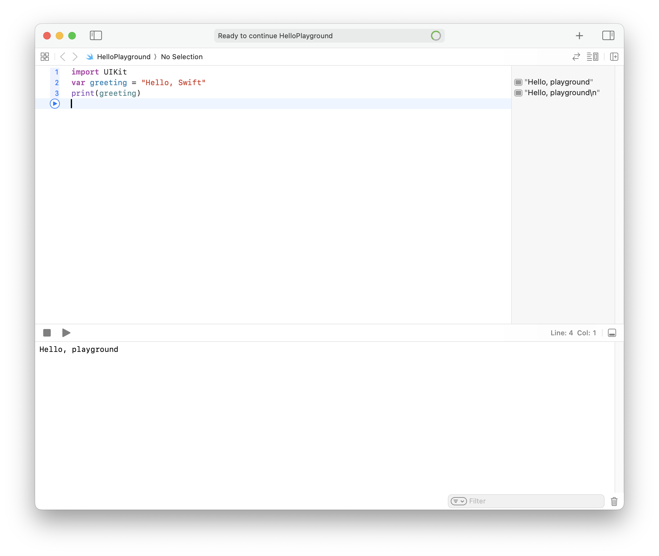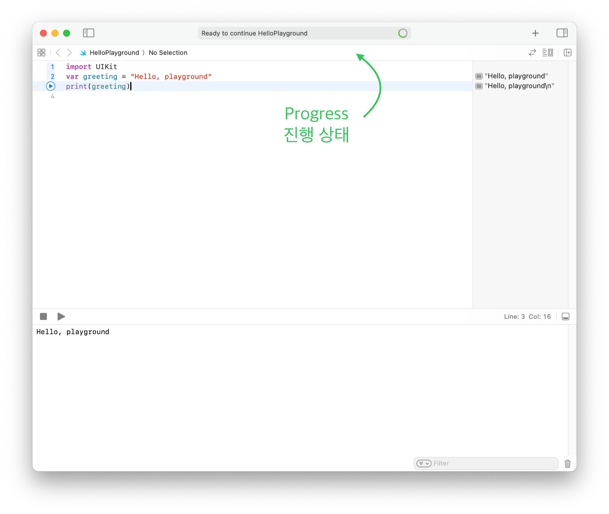 - Editor - Run Playground to Current Line : 입력 포커스가 있는 곳까지 실행 → Shift + Return : 현재 라인까지 실행