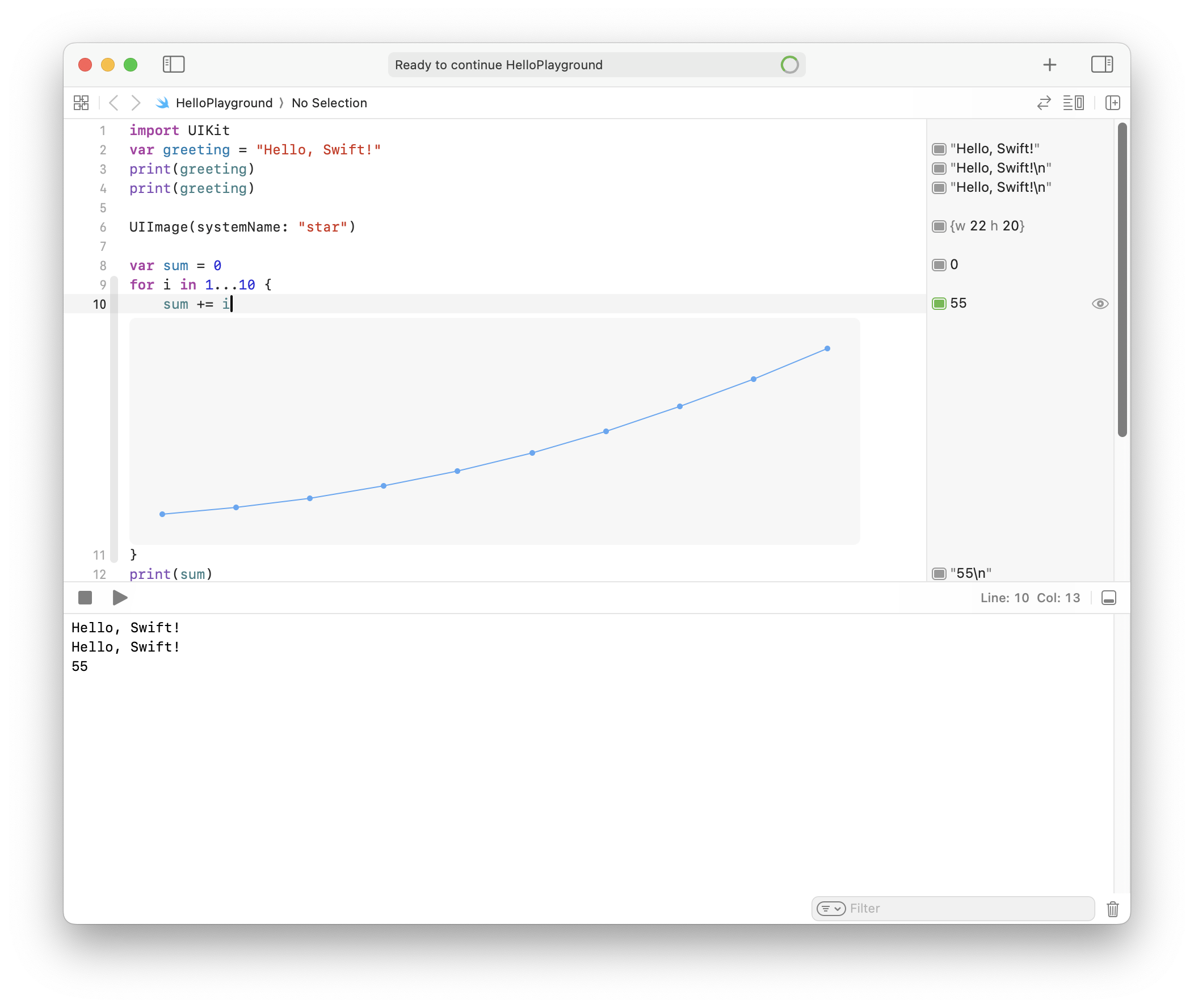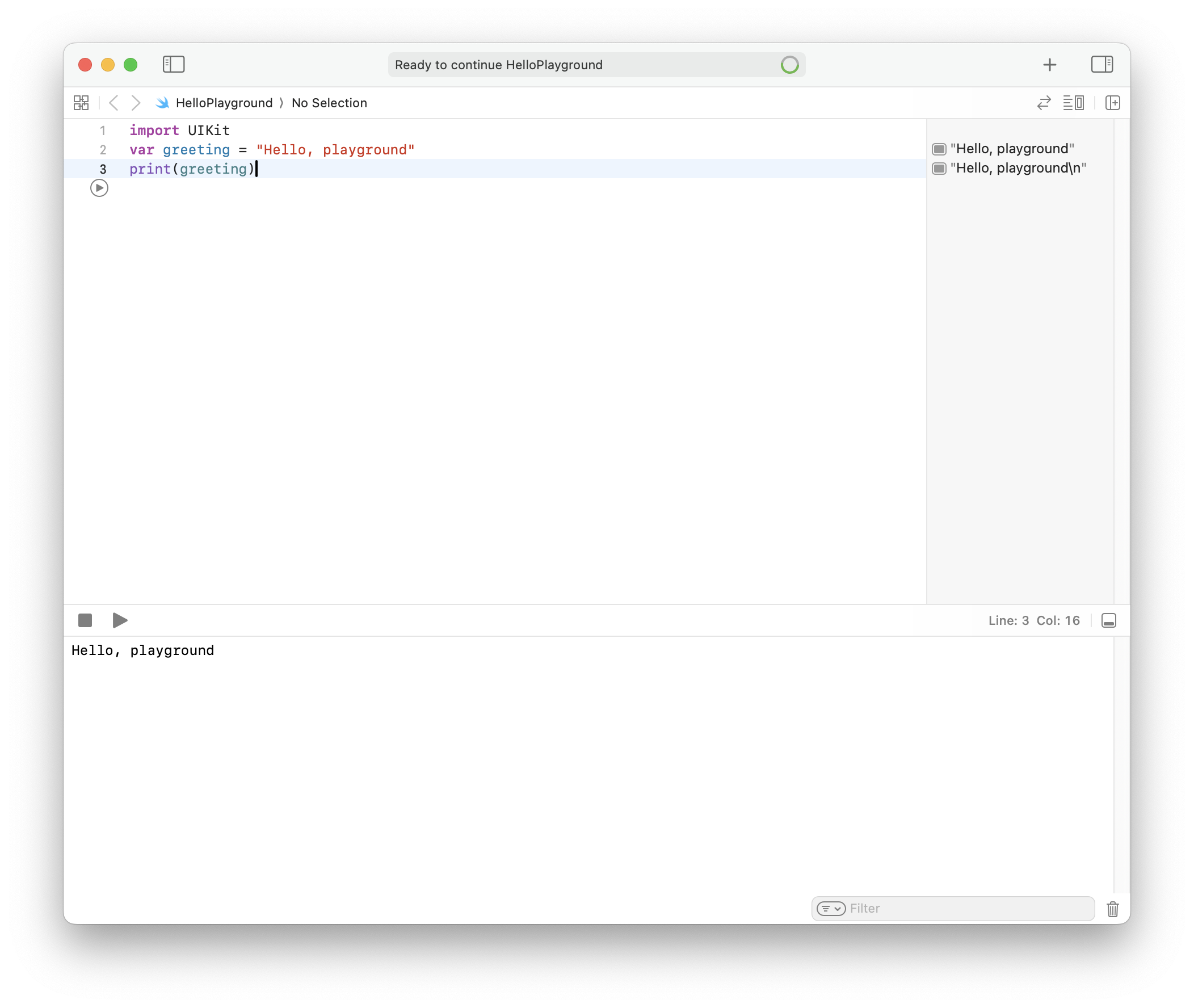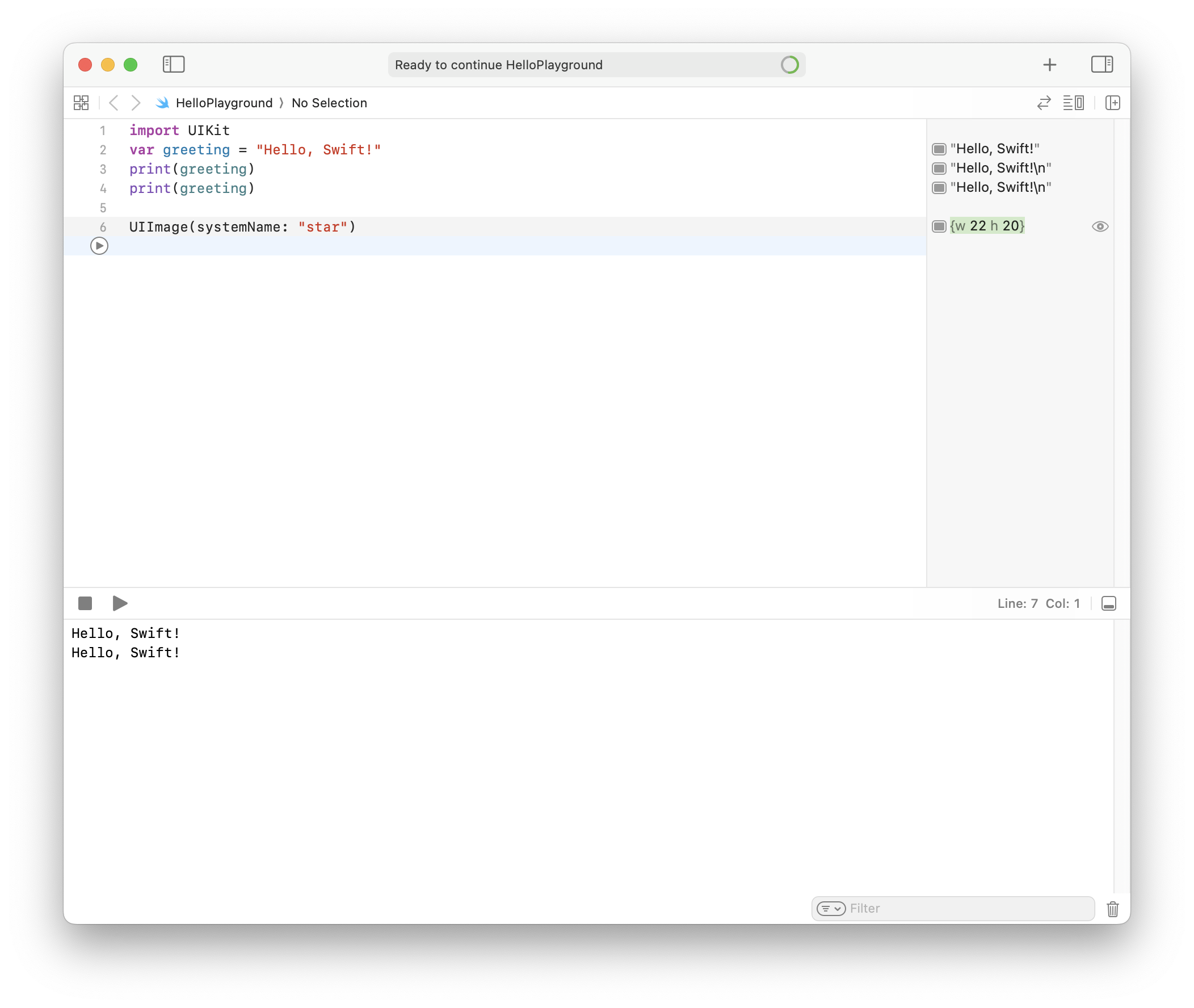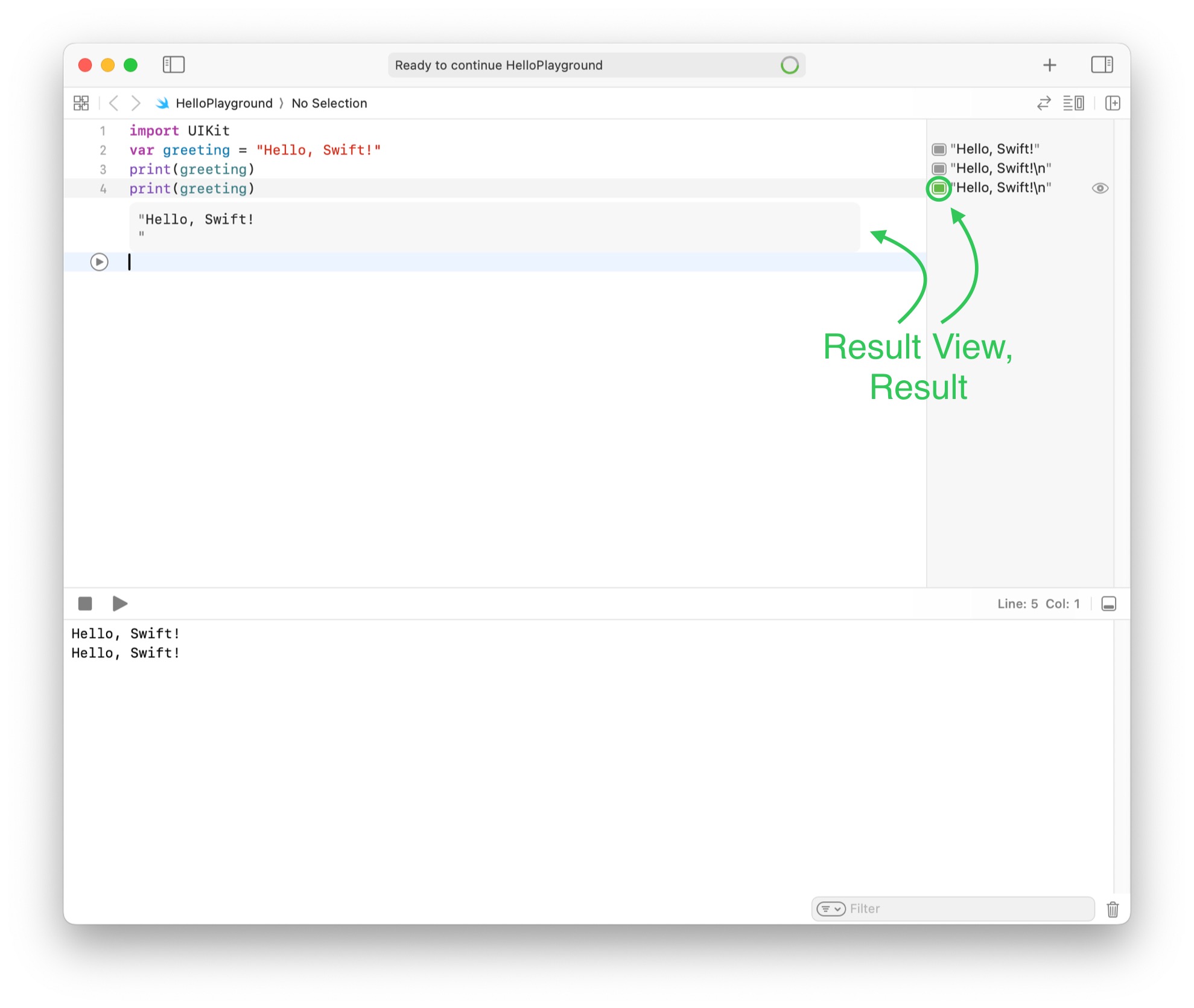 - Editor - Run Playground to Current Line : 입력 포커스가 있는 곳까지 실행 → Shift + Return : 현재 라인까지 실행