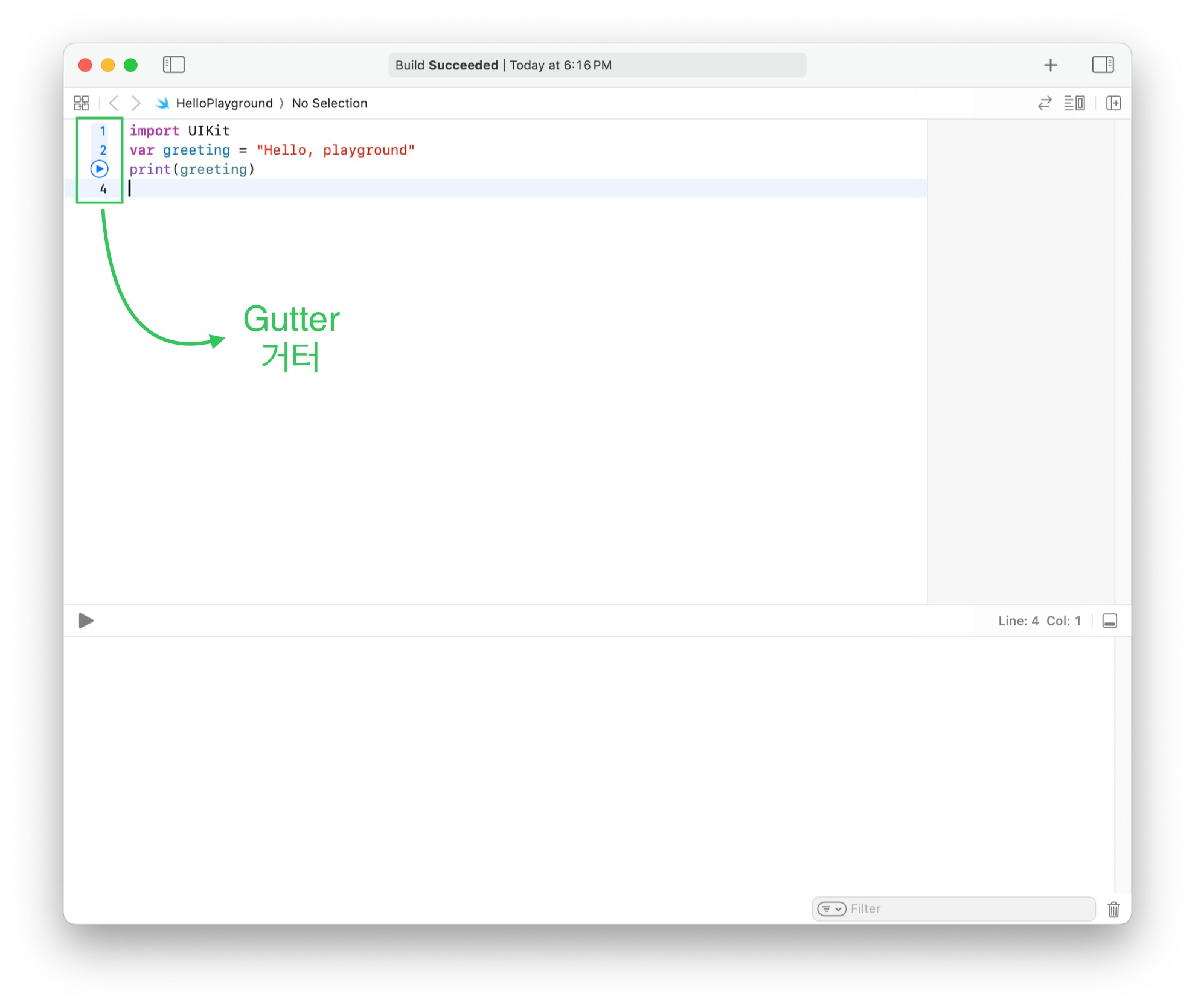 - 라인 번호와 실행 버튼 표시 → Gutter(거터)