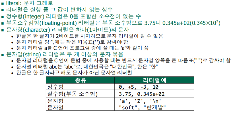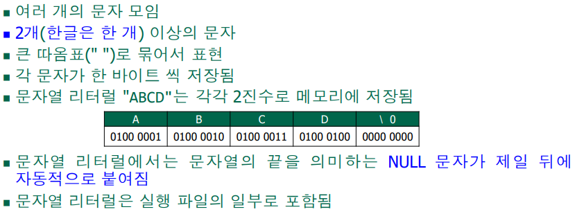 ※ 문자 리터럴은 작은따옴표, 문자열 리터럴은 큰따옴표