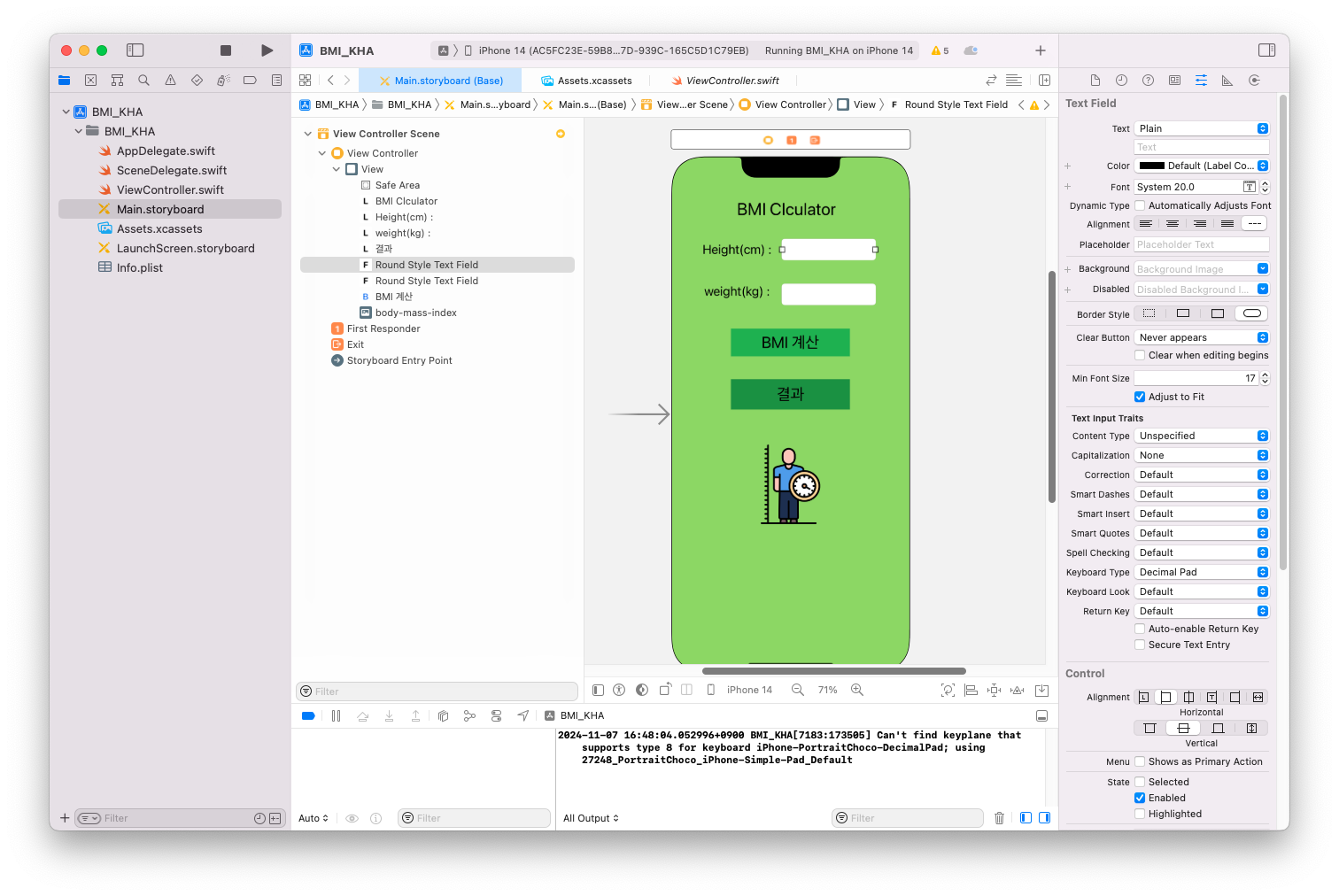 | [IOS 기초] 11주 BMI판정 앱(2) (0) | 2024.11.20 |