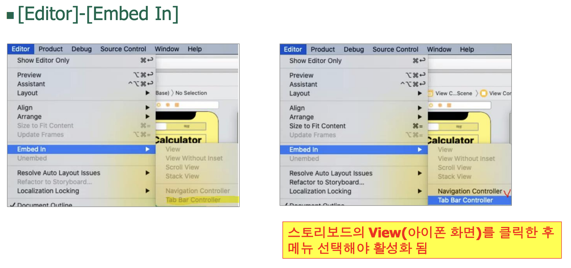 Tab Bar Controller메뉴가 활성화 안 됨?