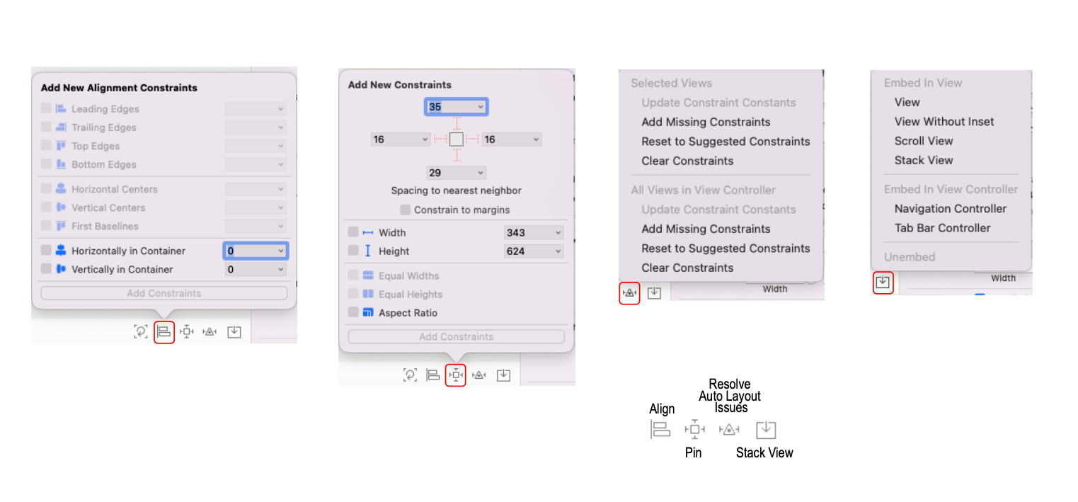 Constraint 설정 툴 : Align, Pin, Resolve, Stack