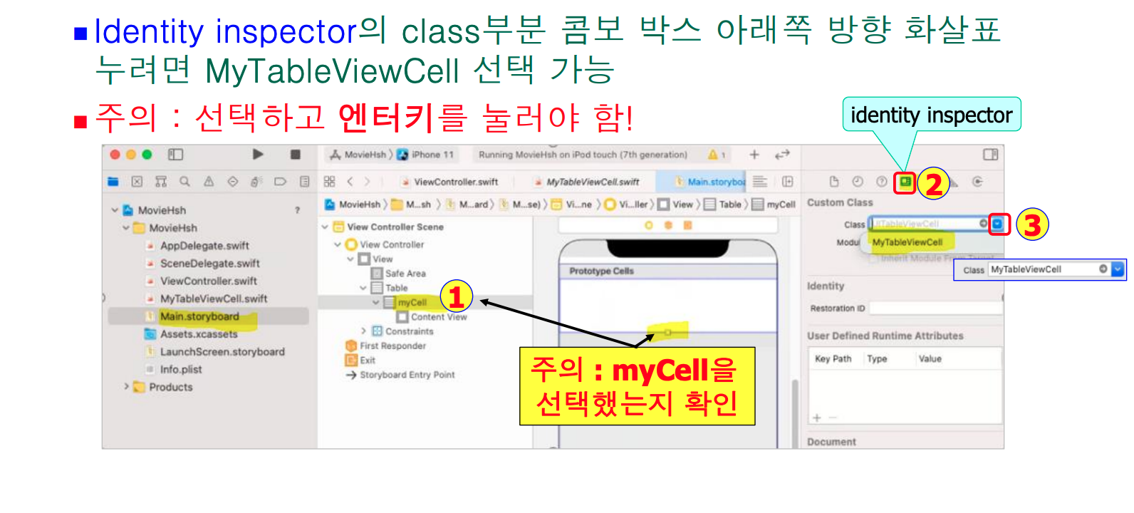 myCell과 관리할 클래스(myTableViewCell) 연결