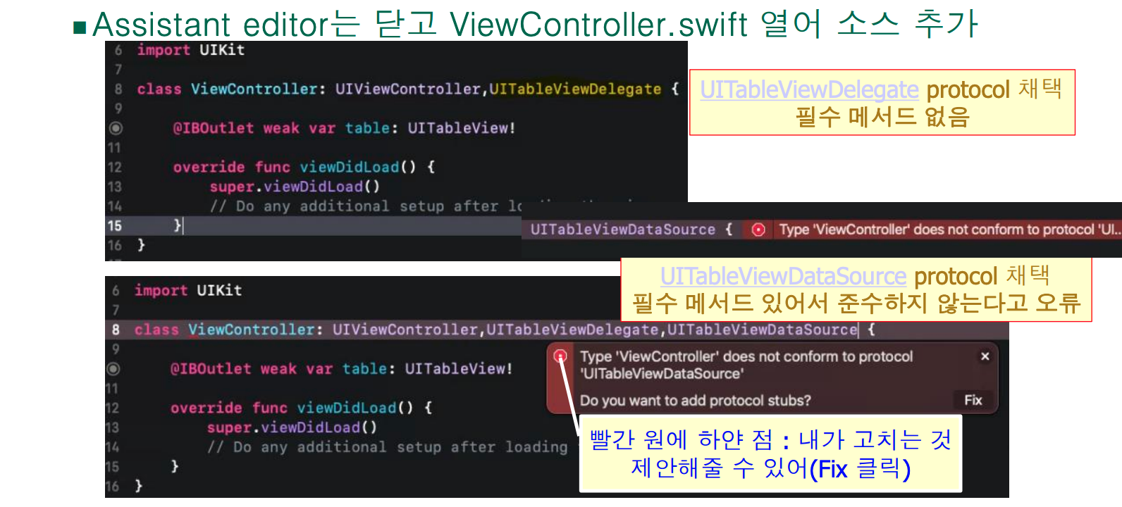 테이블뷰는 2개의 protocol 도움을 받아서 하므로 채택