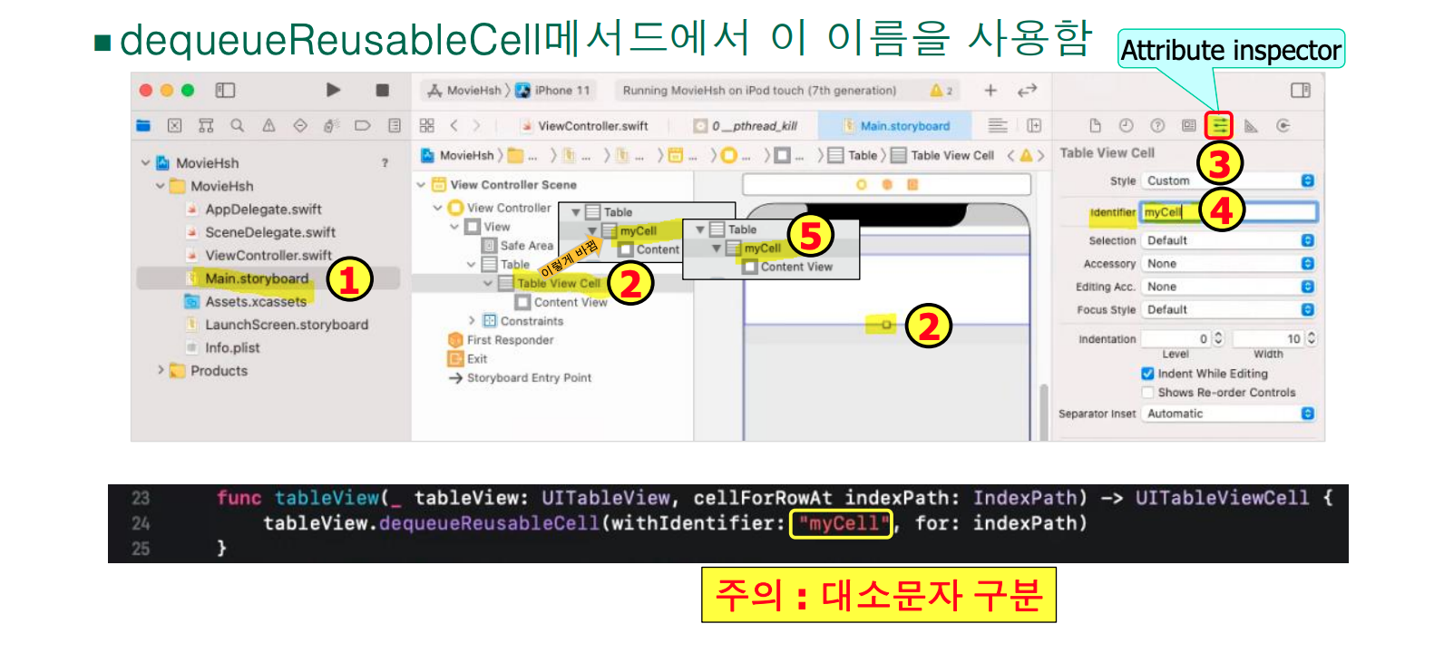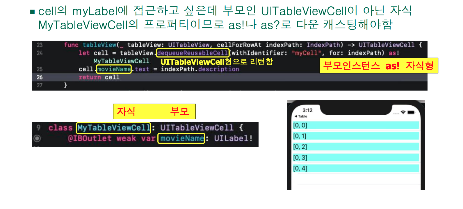 // 가져온 셀을 우리가 만든 커스텀 셀 클래스(MyTableViewCell)로 강제로 형변환(as!)합니다.