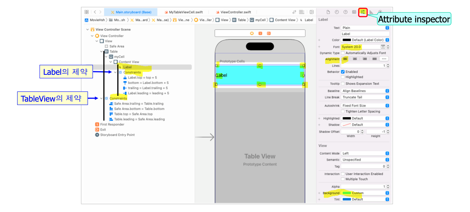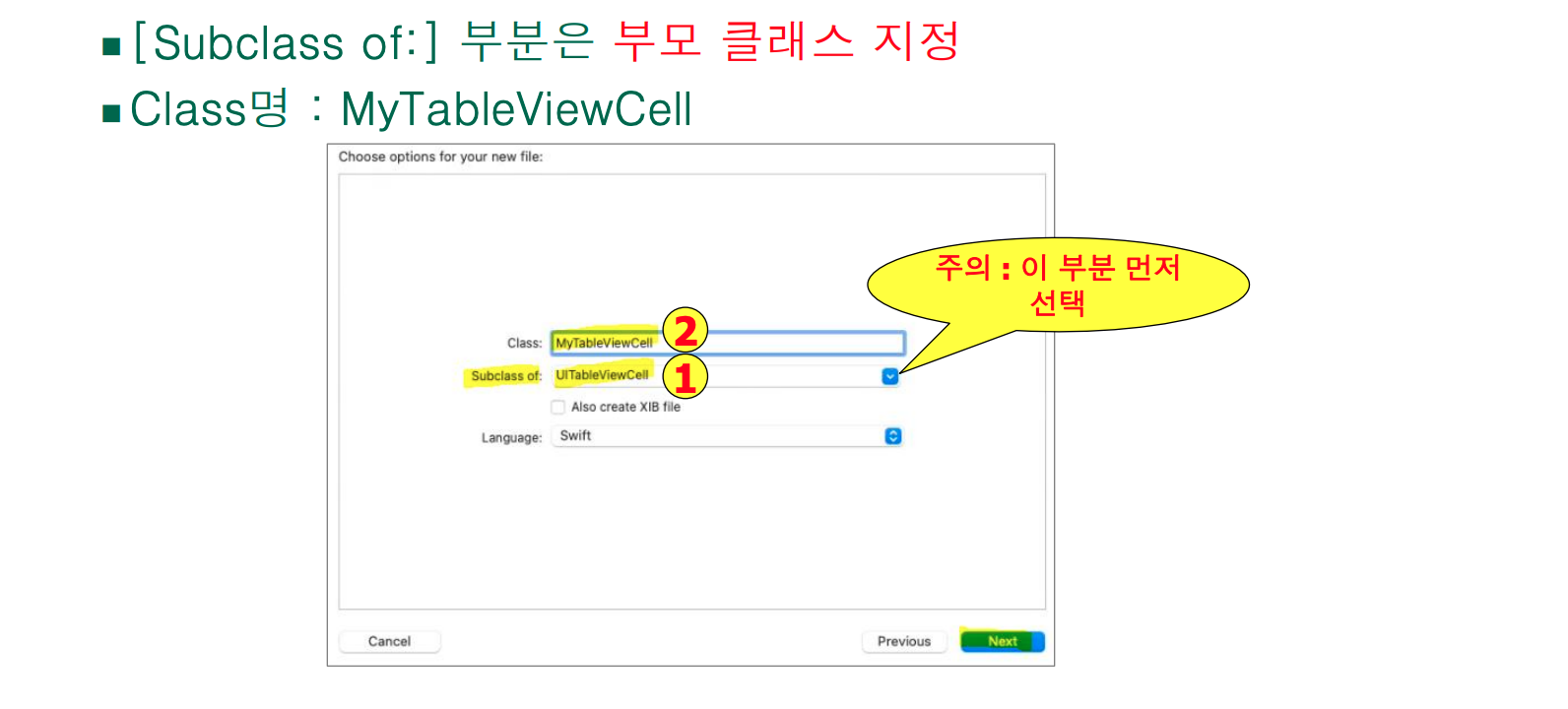 cell을 관리할 MyTableViewCell 클래스 만들기