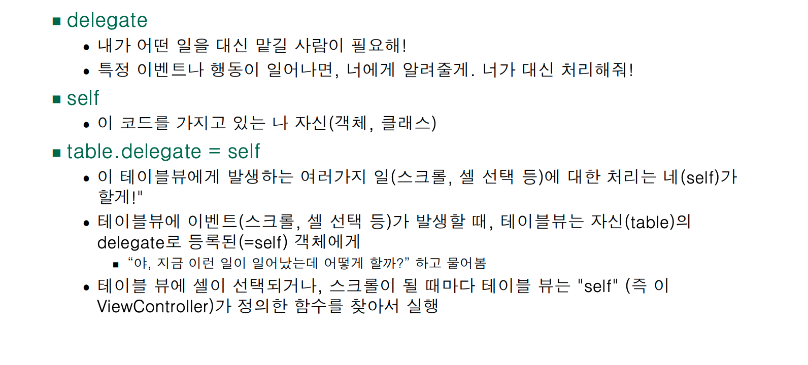// UITableViewDelegate, UITableViewDataSource는 테이블 뷰의 행동과 데이터 처리 역할을 맡음