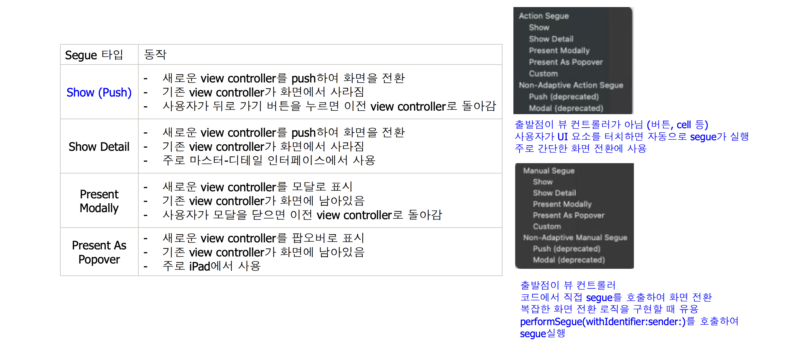 segue type과 Action Segue vs Manual Segue