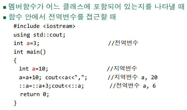 13. 범위 지정 연산자(scope resolution operator) '::'
