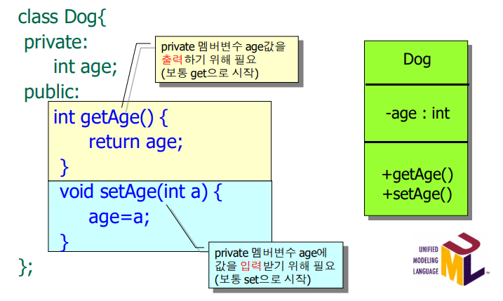 coco.age = 1; //'Dog::age': private 멤버('Dog' 클래스에서 선언)에 액세스할 수 없습니다.