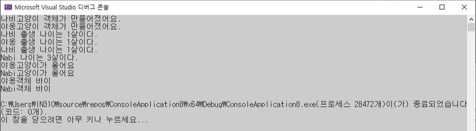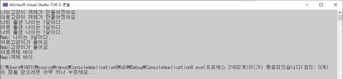 cout << name << "고양이 객체가 만들어졌어요.\n";