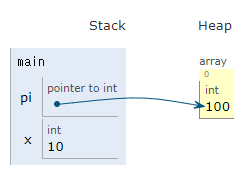 std::cout << "동적메모리=" << *pi << ", x=" << x;