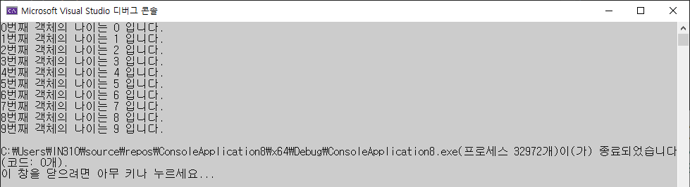 cout << yaong.getName() << " 출생 나이는 " << yaong.getAge() << "살이다.\n";