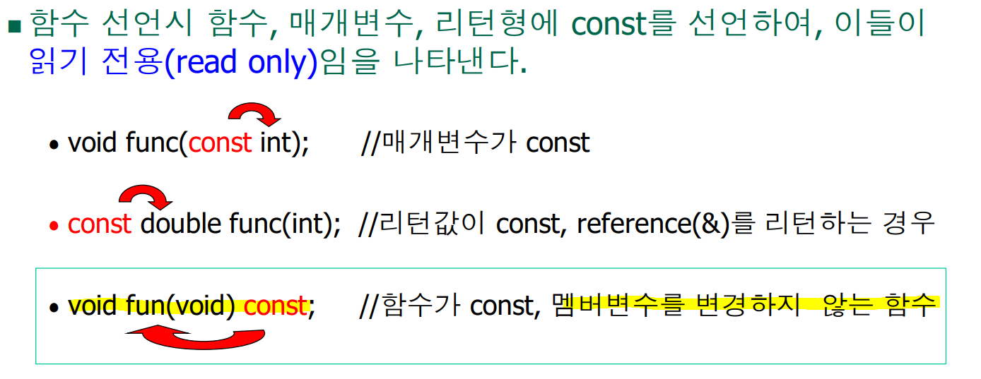 //해당 클래스의 어떠한 멤버변수도 바꾸지 않는 멤버함수(get으로 시작하는함수)는 const형으로 선언하는 것이 좋다.