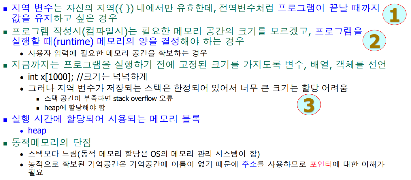 int* num; // 동적으로 할당할 정수형 배열을 가리킬 포인터를 선언
